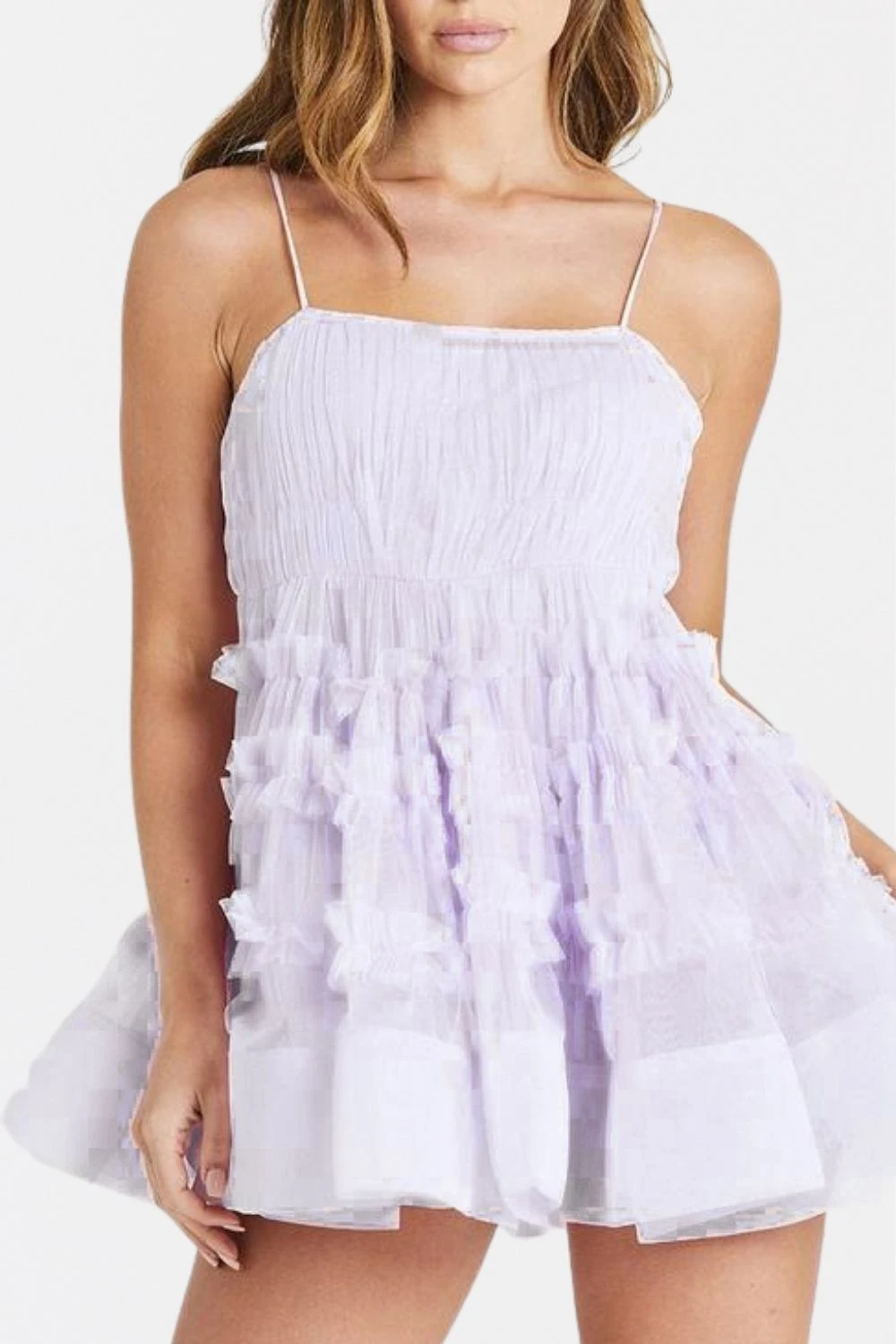 Lace & Beads Bethan structured tulle tiered mini dress in lilac. Tutu-shaped mesh dress with built-in bodysuit. This gorheous lilac tulle mini dress is an absolute must-have this season. Pair with some sparkly bow heels to finish the luxe look. Our favorite lilac mesh mini dress features ruffle detailing throughout the structured skirt and adjustable cami straps for a flattering fit. Add this dreamy tulle mini dress to your wardrobe now!