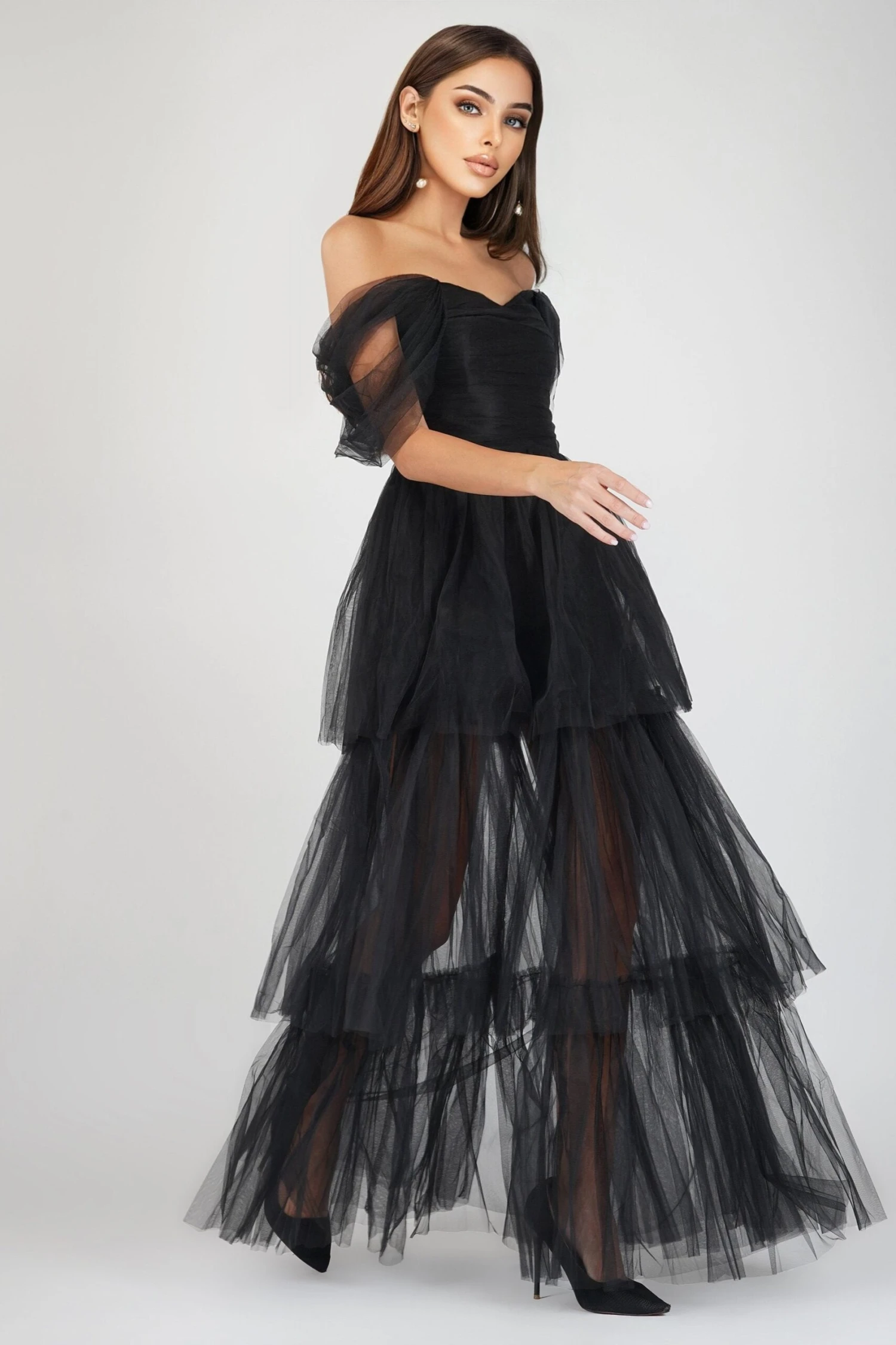 Lace & Beads Sydney black tulle maxi dress featuring a thigh-high split, a wrapped bodice, and a shirred stretchy back for a flattering fit. This black cocktail dress is the stand-out dress you have got to have! Turn heads at your next big night out with this unique tulle gown. From the classic colour to the voluminous tulle skirt – this is the ultimate statement dress and an absolute must-have for your next occasion.